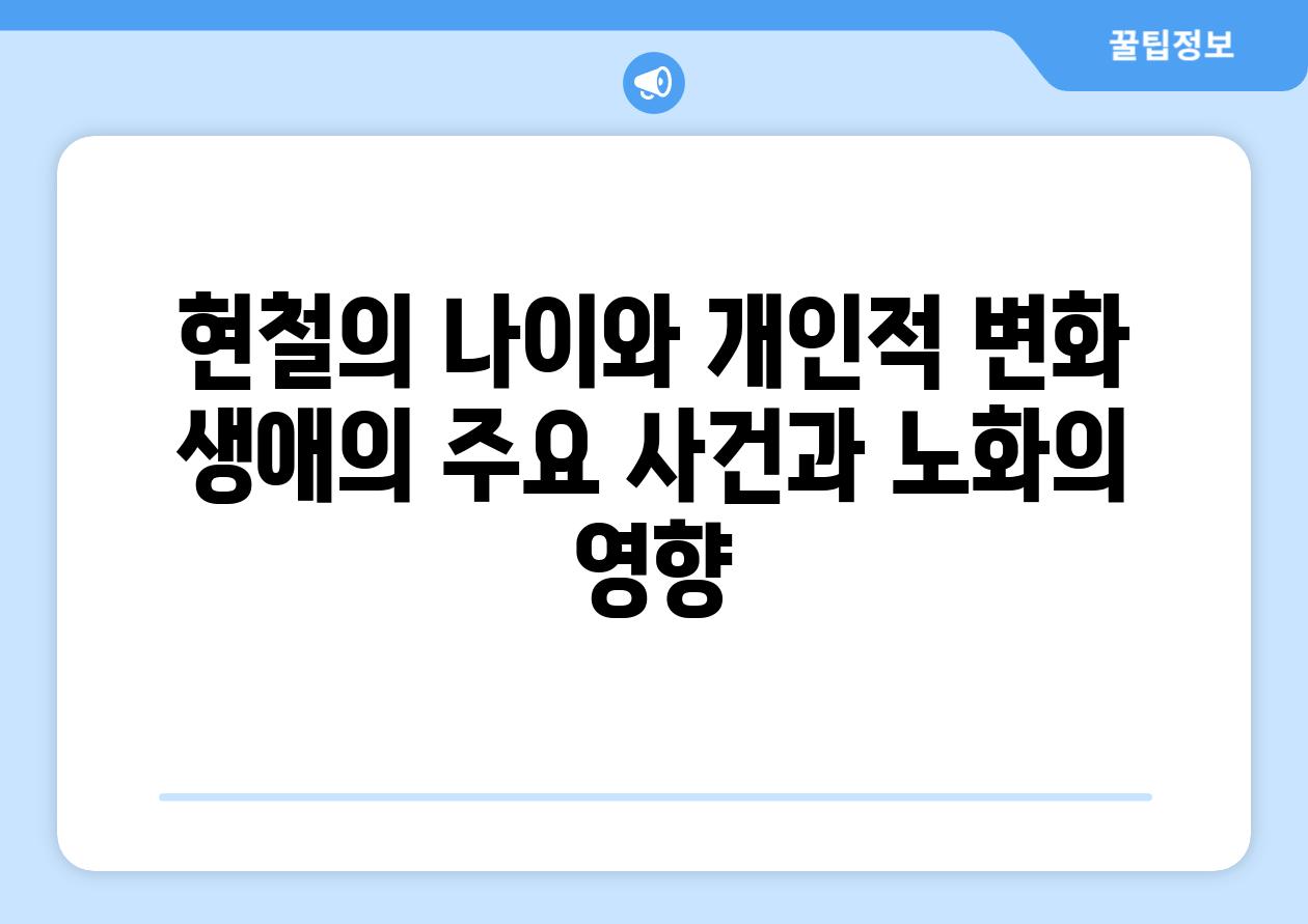 | 현철의 나이와 개인적 변화 생애의 주요 사건과 노화의 영향 |