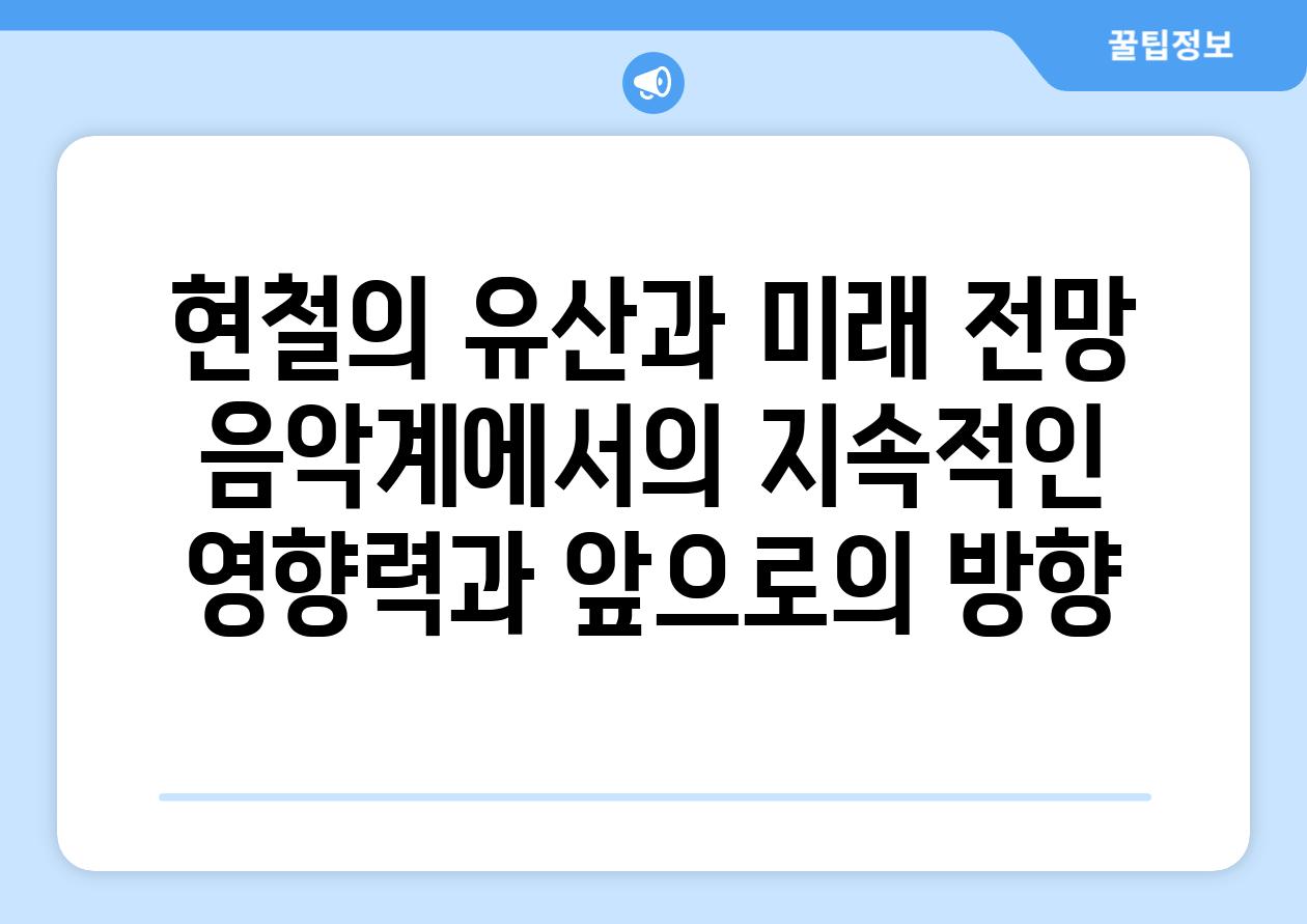 | 현철의 유산과 미래 전망 음악계에서의 지속적인 영향력과 앞으로의 방향 |