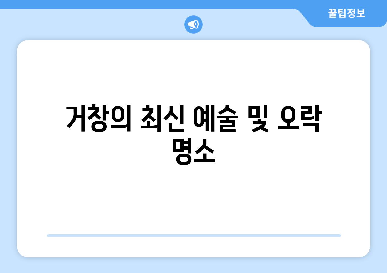 A. 거창아쿠스텍콘서트홀을 들러 보세요. 뛰어난 음향 설계와 아름다운 반향 장치를 갖춘 이 공연장에서는 클래식 음악부터 재즈, 록까지 다양한 음악 공연을 개최합니다.