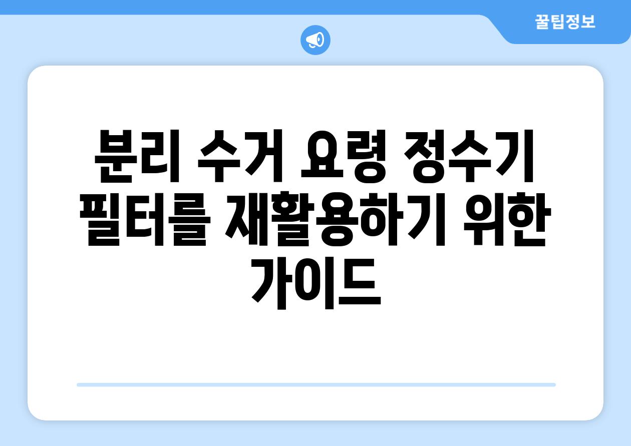분리 수거 요령 정수기 필터를 재활용하기 위한 설명서