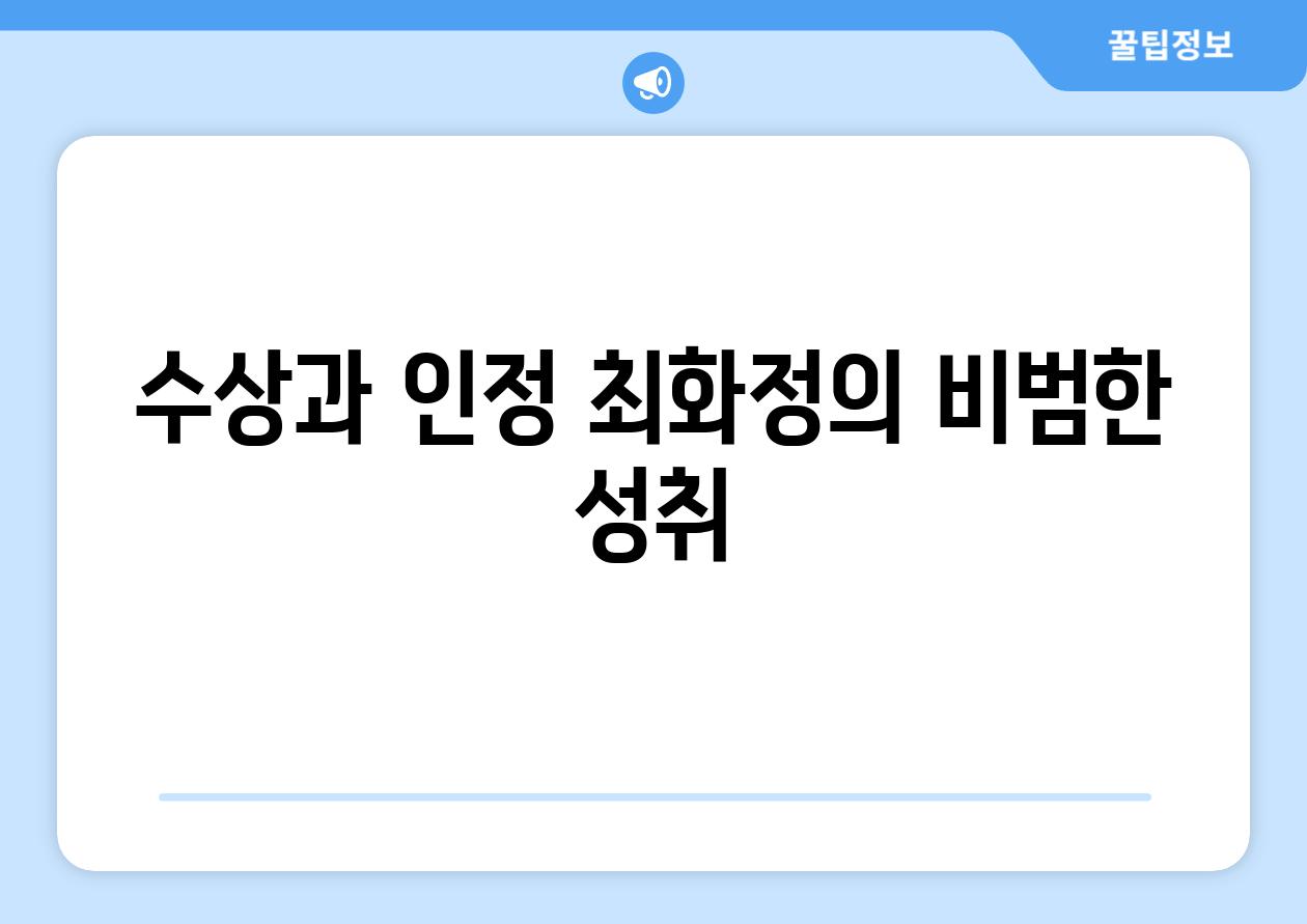 최화정은 데뷔 이래 뛰어난 연기력으로 다수의 상을 수상했습니다. 주요 수상 경력을 살펴보면 다음과 같습니다.